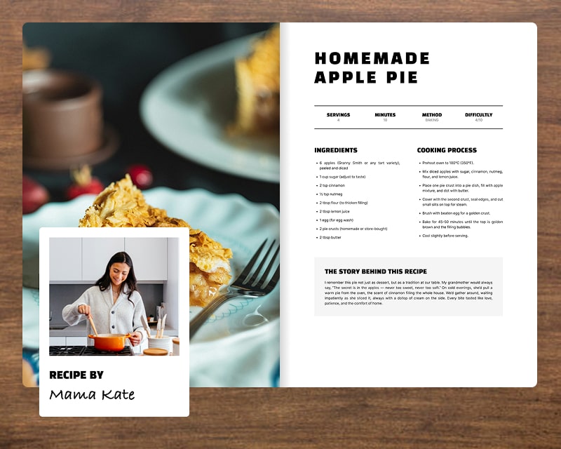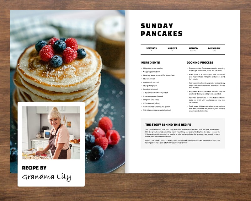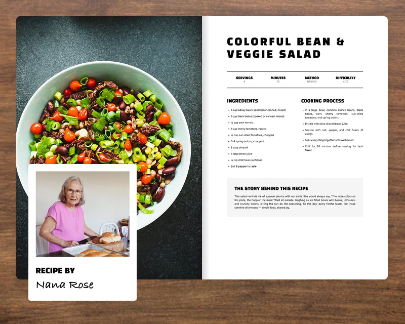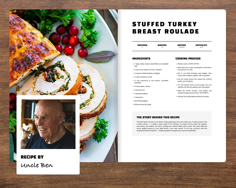 Recipes aren’t just about ingredients, they’re about people. Tag each dish with the family member who created it and watch your cookbook turn into a living tribute to everyone’s unique touch in the kitchen.